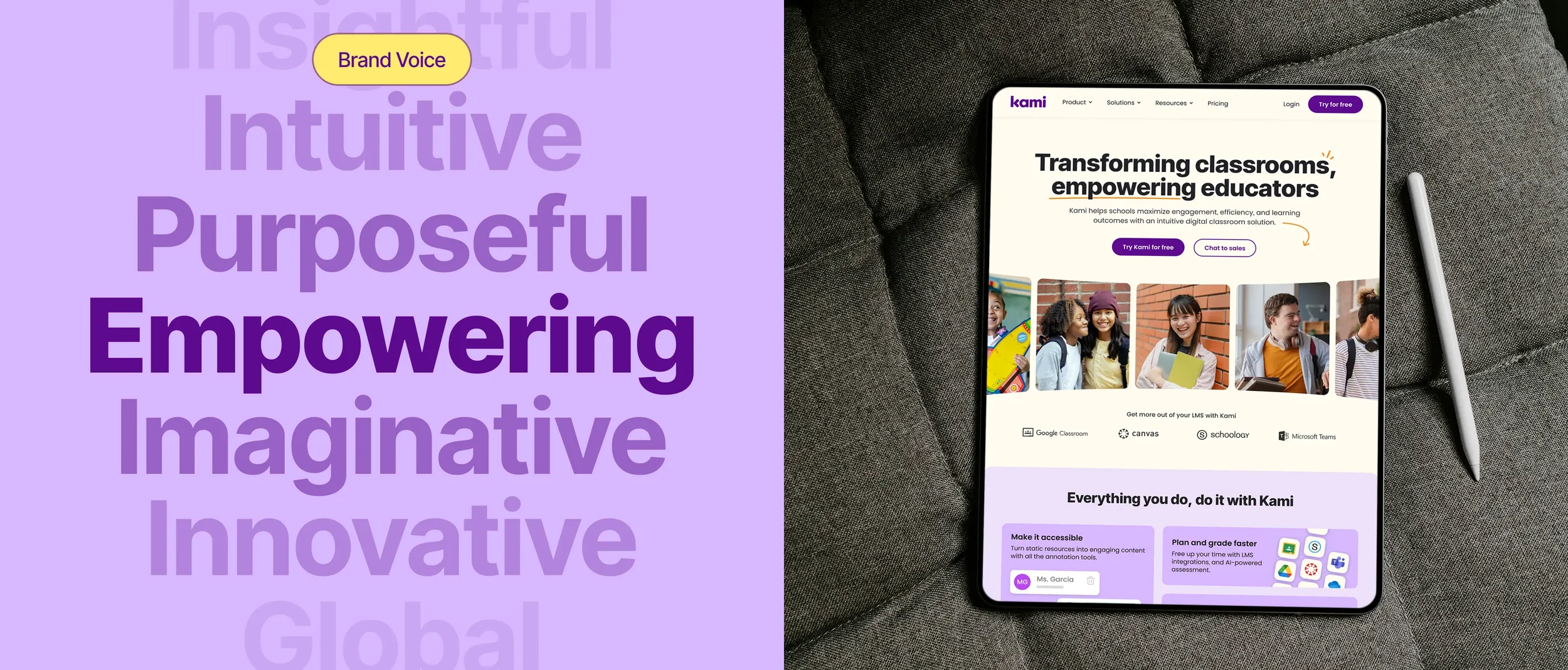 kami rebrandAs Design Marketing Lead, I led a full rebrand of Kami to reposition it as a more professional, strategically aligned brand.